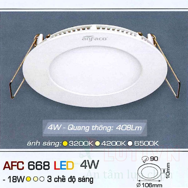 Màu sắc ánh sáng: 3200K - Ánh sáng vàng hoặc 4200K - Ánh sáng trắng âm hoặc 6500K - Ánh sáng trắng.