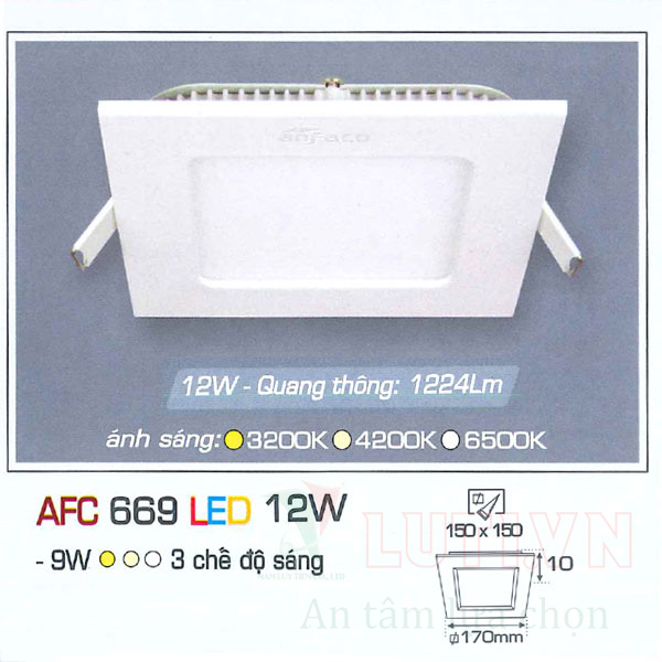 Đèn led âm trần AFC-669-12W-3CĐ được phân phối chính hãng bởi Công ty TNHH Nam Lũy Tiến chiết khấu cao cho dự án và cửa hàng. Liên hệ: 0938669355.