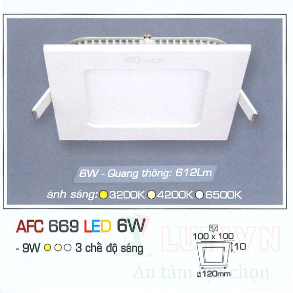 Đèn led âm trần AFC-669-6W-3CĐ được phân phối chính hãng bởi Công ty TNHH Nam Lũy Tiến chiết khấu cao cho dự án và cửa hàng. Liên hệ: 0938669355.