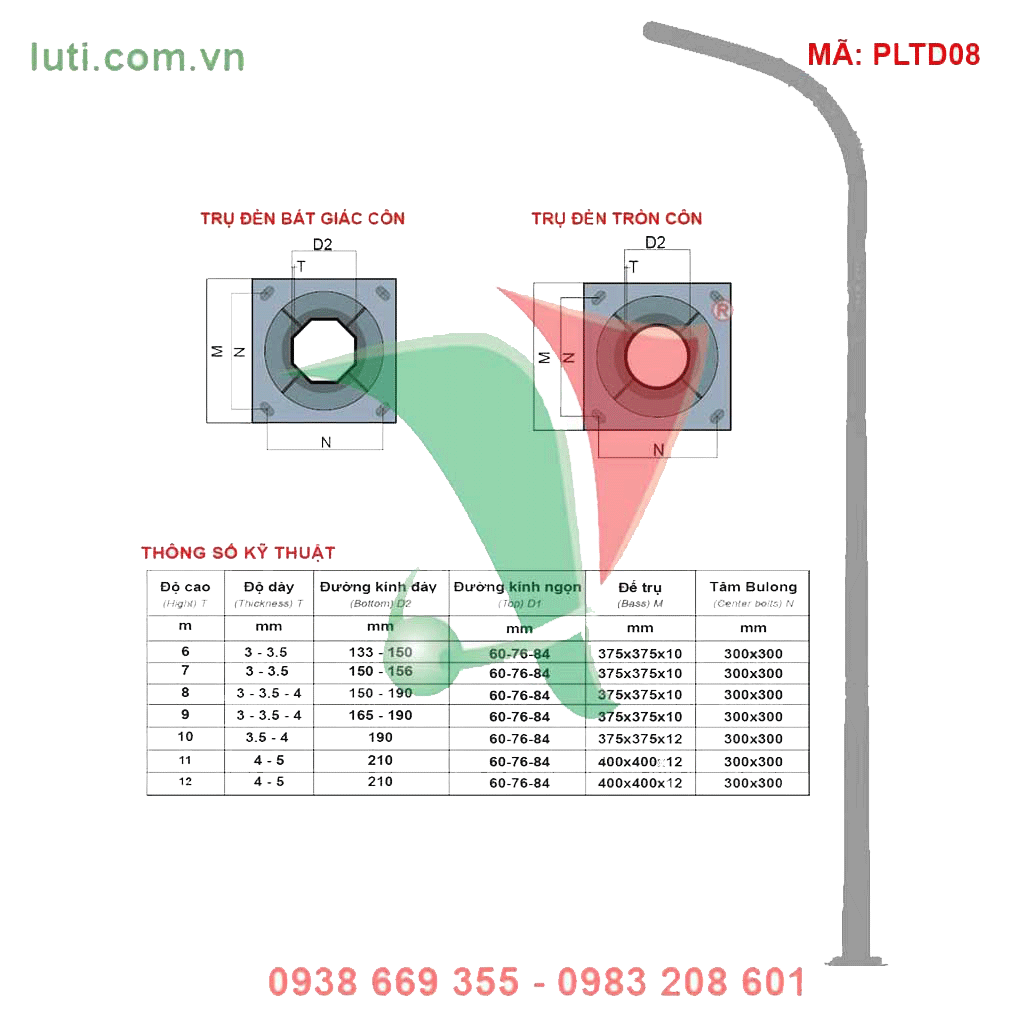 * ĐẶC ĐIỂM TRỤ ĐÈN PLTD08: